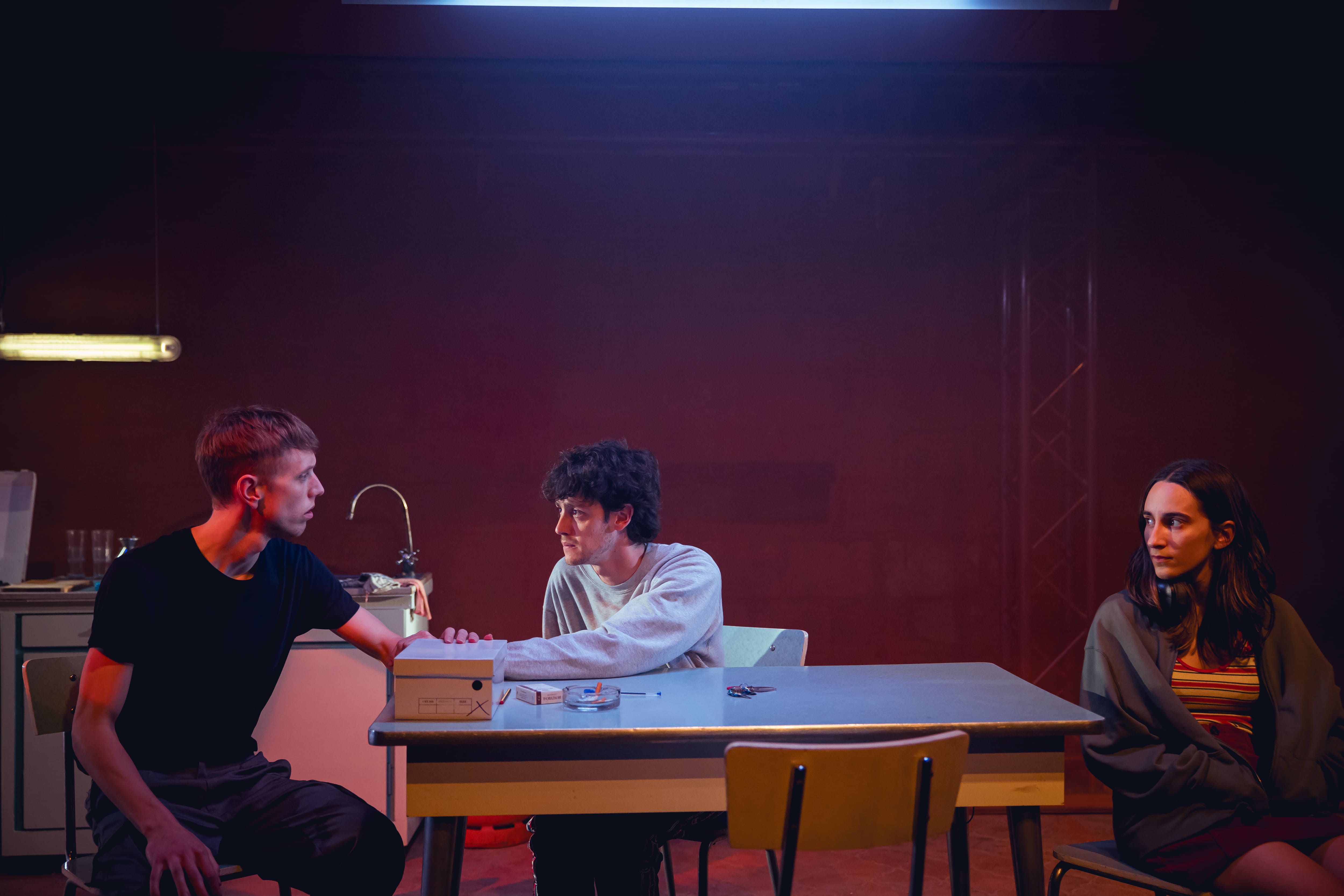 Refugi és una comèdia fosca, o un drama lluminós, o uns personatges enfosquits per anhels i desitjos que xoquen els uns amb els altres. És una sitcom americana, un Txékhov modern o una tragèdia quotidiana, on a través d'un forat ens endinsem en una casa, molt llunyana però molt propera. I allà, els coneixem: l'Amy, la Becca, el Nat i el Sam que, aliens a la nostra mirada, potser, lluiten per convertir-se en refugi els uns dels altres. Però, i sobretot, per convertir-se en el refugi d'ells mateixos.