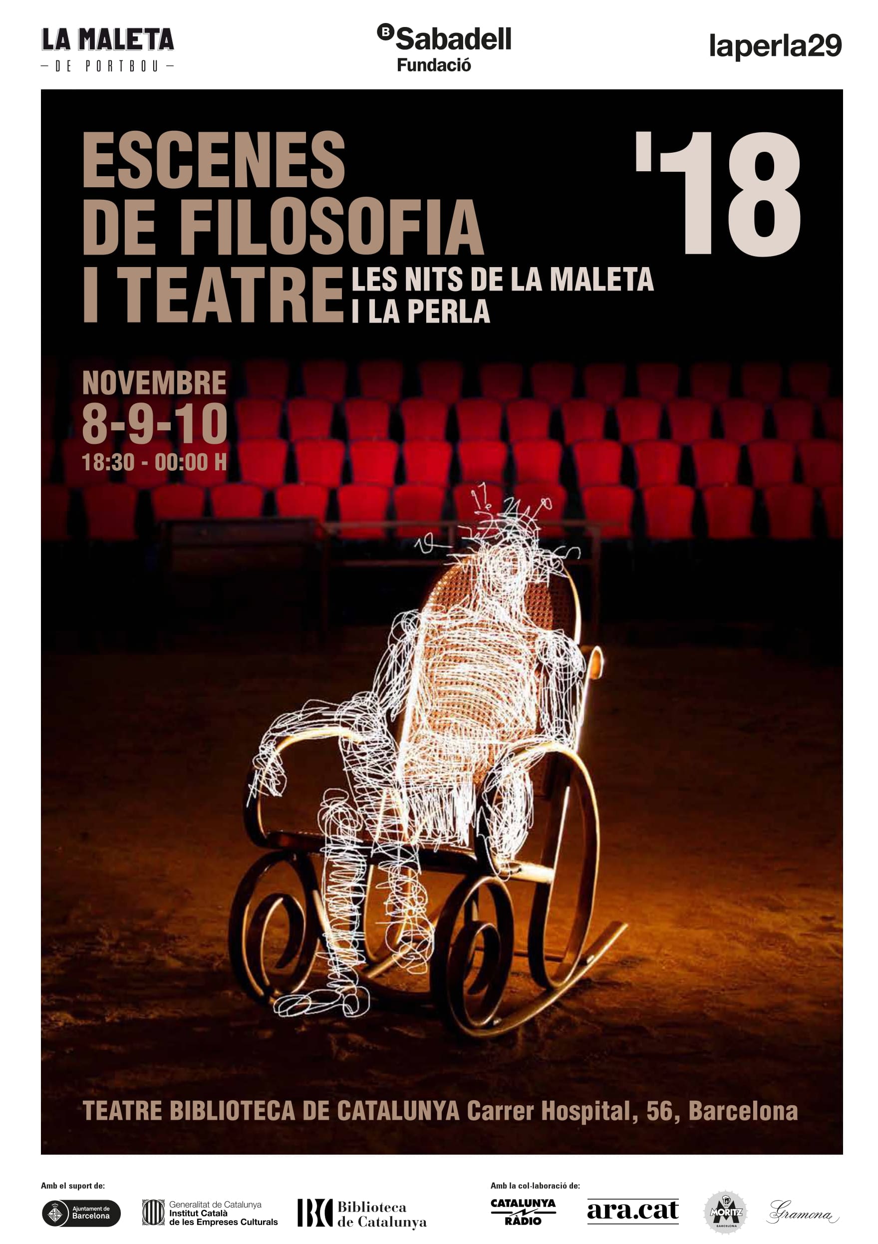 Scenes of philosophy and theater 2018 starts from a question: in a moment of cultural relativism, of plurality of opinions and dissonant voices, all put on the same level of construction of reality; in a time of information dispersion where a new form of censorship is imposed on those who do not contribute to generating noise, where is the silence? Where is the nothing that gives meaning to being? Where is the listening and the minimum basis of consensus, necessary to undertake any dialogue? From where to build a common agreement today? Scenes of philosophy and theater vindicates the theatrical form as a specific and fruitful mode of thinking in common, as an ideal framework from which to think again about the need to collectively build common bases. It is necessary to recover the scene as a form of thought, its determining relationship with the public, with its implicit codes - which may need to be broken - and with a presence - which may need to be rethought - unprecedented in other areas. It must be resumed in order to reverse the individualism inherent in modernity, the basis of the extreme cultural relativism that today prevents any solid attempt at community thinking.
