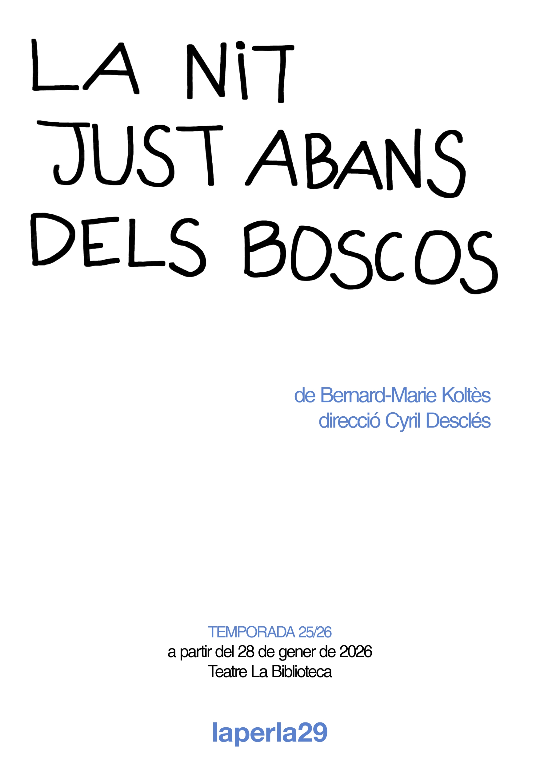 Le metteur en scène français Cyril Desclés présente au Teatre La Biblioteca le monologue le plus célébré et poétique de Koltès, interprété en catalan par Marc Garcia Coté, décrit comme « une rencontre avec un ange au milieu de tout ce bazar ».